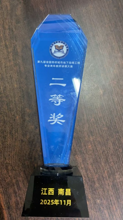 2025年11月14日至16日,由中国岩石力学与工程学会、教育部高等学校土木工程专业教学指导分委员会主办、江西水利电力大学承办的第九届全国高校城市地下空间工程专业青年教师讲课大赛在江西南昌举行。通过激烈角逐,建工学院土木系教师胡坤博士荣获一等奖,刘守花博士荣获二等奖。