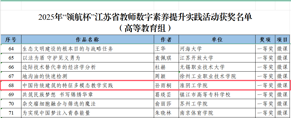 近日,我院孙雨桐老师在2025年“领航杯”江苏省教师数字素养提升实践活动竞赛中荣获一等奖。