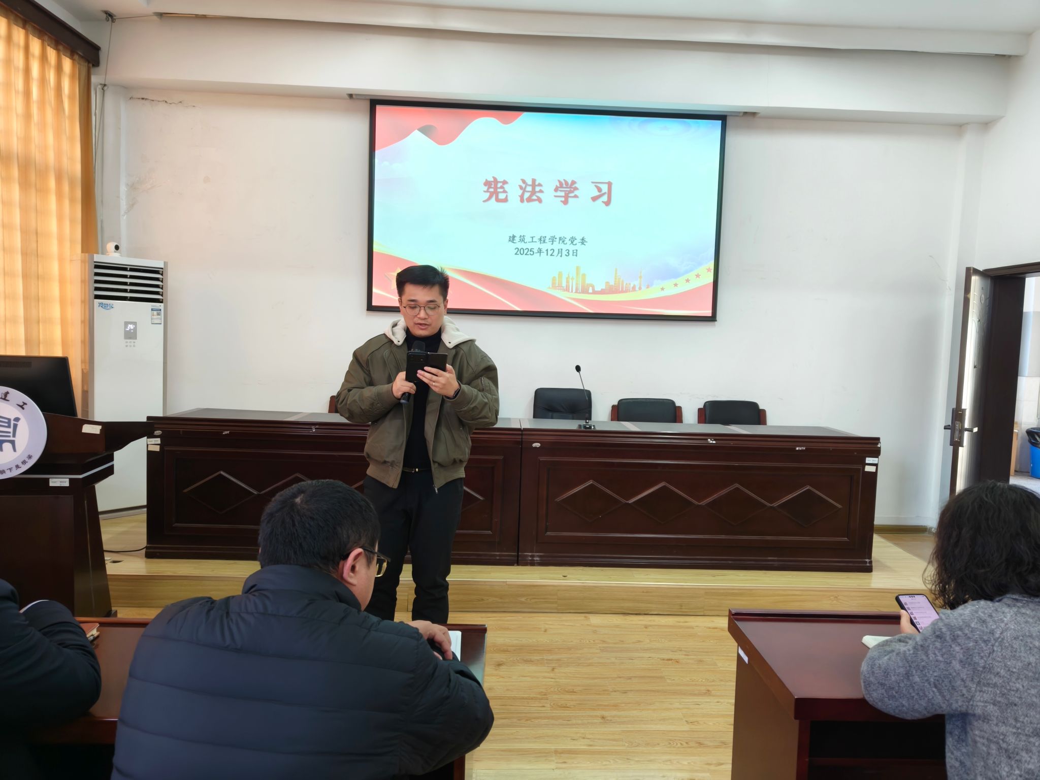 为深入学习宣传习近平法治思想和习近平总书记关于宪法的重要论述,12月3日下午,建筑工学院党委组织全体教职工开展宪法及宪法相关法专题学习活动,以“线下集中领学+线上材料赋能”的形式,将法治学习与实践结合,活动由学院党委书记夏雪芹主持。