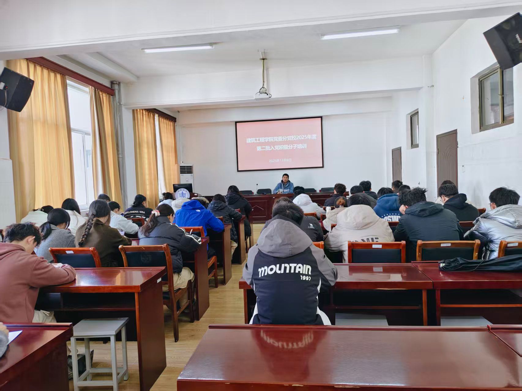 2025年12月8日至2025年12月9日,建筑工程学院党委组织开展了2025年度第二批入党积极分子培训课程,本次培训分别由冯学良、郝存生、韩飞、陈曦、孙雨桐等五位老师主讲,学院近60名入党积极分子参加了此次培训。