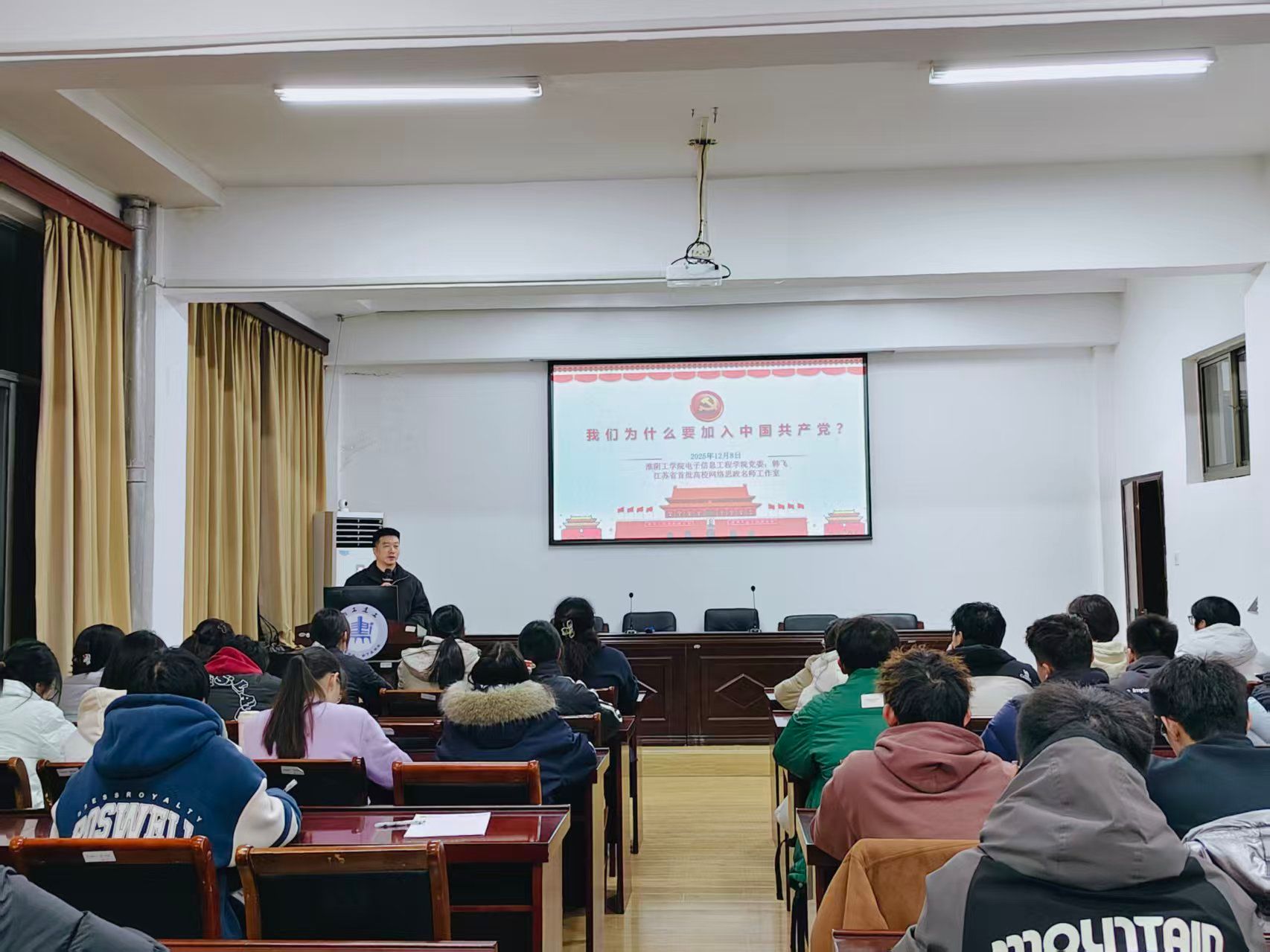 第三讲邀请电子信息工程学院党委书记韩飞,主题为:《我们为什么要加入中国共产党》,鼓励并引导全体积极分子认真学习党的理论知识,奋发有为积极向上,不断提升自我,展现新时代新青年的昂扬风貌。