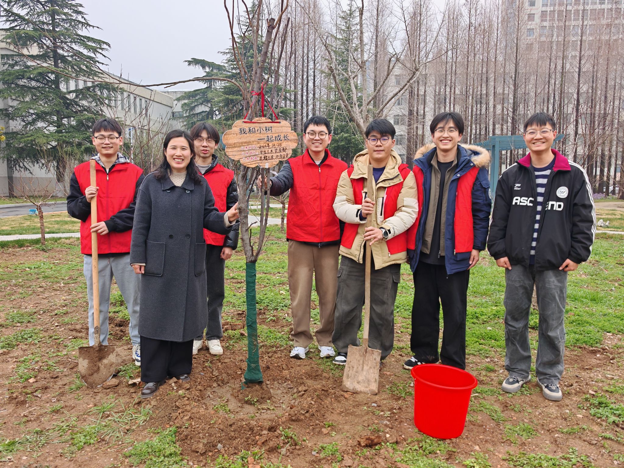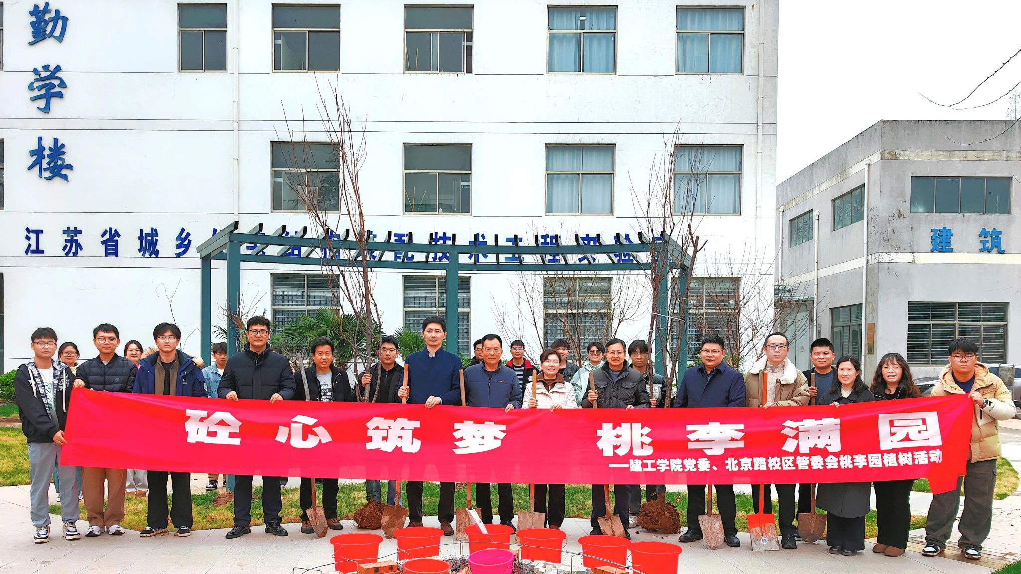 3月18日,由建筑工程学院党委与淮安大学北京路校区管委会联合举办的“砼心筑梦 桃李满园”主题植树活动在北京路校区桃李园内举行。此次活动将专业精神、劳动实践与思政教育融为一体,成为一堂生动的户外育人课。北京路校区管委会主任马建村,建工学院党委书记夏雪芹、院长陈亚东及领导班子成员与师生代表共同参与本次活动。