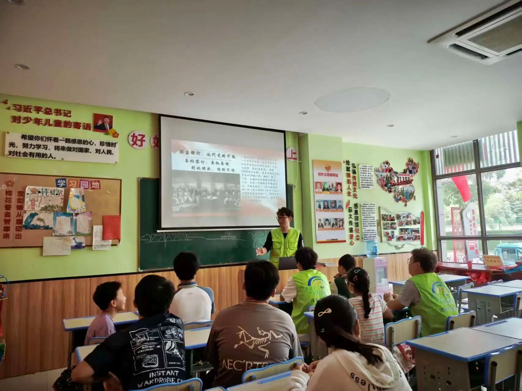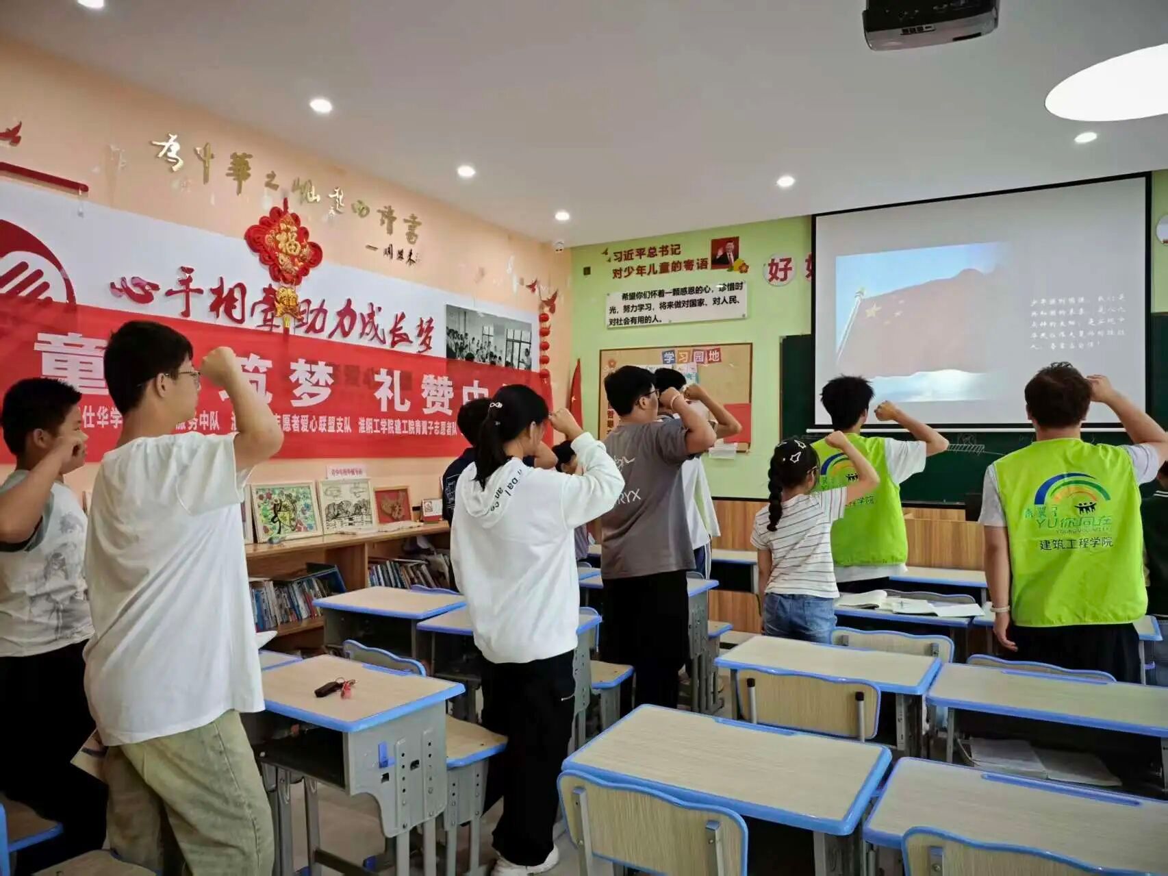 10月5日,活动在“铭记历史,筑梦中华”的庄严主题中达到高潮。志愿者们通过讲述近代以来中华民族的奋斗史,让孩子们深刻理解“一寸山河一寸血”的含义,明白当下的幸福生活是先辈们用血泪换来的。从“两弹一星”的研发,到抗美援朝的胜利,再到中华崛起,一段段历史激发了孩子们的爱国情怀。活动最后,孩子们用真挚的语言宣誓:“少年强则国强,我们是祖国的未来,是八九点钟的太阳,吾辈当自强!”稚嫩中带着铿锵,表达了孩子们铭记历史、振兴中华的坚定决心。课程的最后,志愿者结合自身特长,带来了一系列趣味节目:口琴独奏《我和我的祖国》,巧手折纸打造“中国心”,“绘梦中华”手绘天安门……