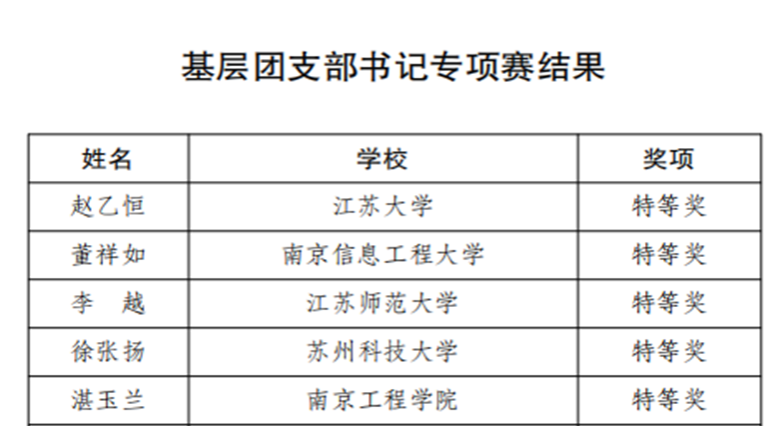 近日,由共青团江苏省委、中共江苏省委教育工委等单位联合主办的第五届江苏高校百校万名团干部思政技能大比武决赛在中国矿业大学举行。经过校赛选拔。我院学生陈远洋参加省赛,获基层团支部书记专项赛三等奖。
