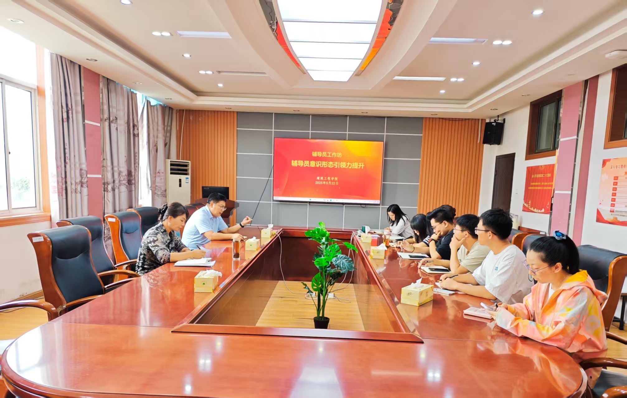 2025年9月22日下午,建工学院在北京路校区品学楼3316举办辅导员工作坊。学院党委书记夏雪芹、副书记、副院长郝存生及全体辅导员参加本次活动。