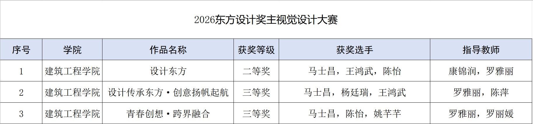 近日,2026届东方设计主视觉参赛作品获奖名单揭晓。我院学子分别荣获二等奖、三等奖。