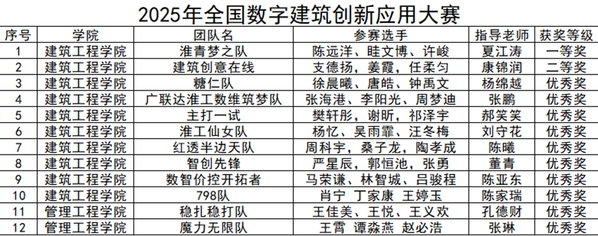 此次佳绩的斩获,不仅是我校学子在数字建筑领域创新实践能力的有力彰显,更印证了学校对接行业需求、深化产教融合的育人成效——以国家级赛事为纽带,将数字技术与建筑专业深度融合,为学生搭建了锤炼本领、展示风采的优质平台。未来,学校将持续深耕建筑类人才培养创新,聚焦数字建筑发展前沿,推动教学实践与行业需求同频共振,助力更多青年学子在建筑数字化转型的浪潮中勇立潮头,为行业高质量发展注入源源不断的青春动能。